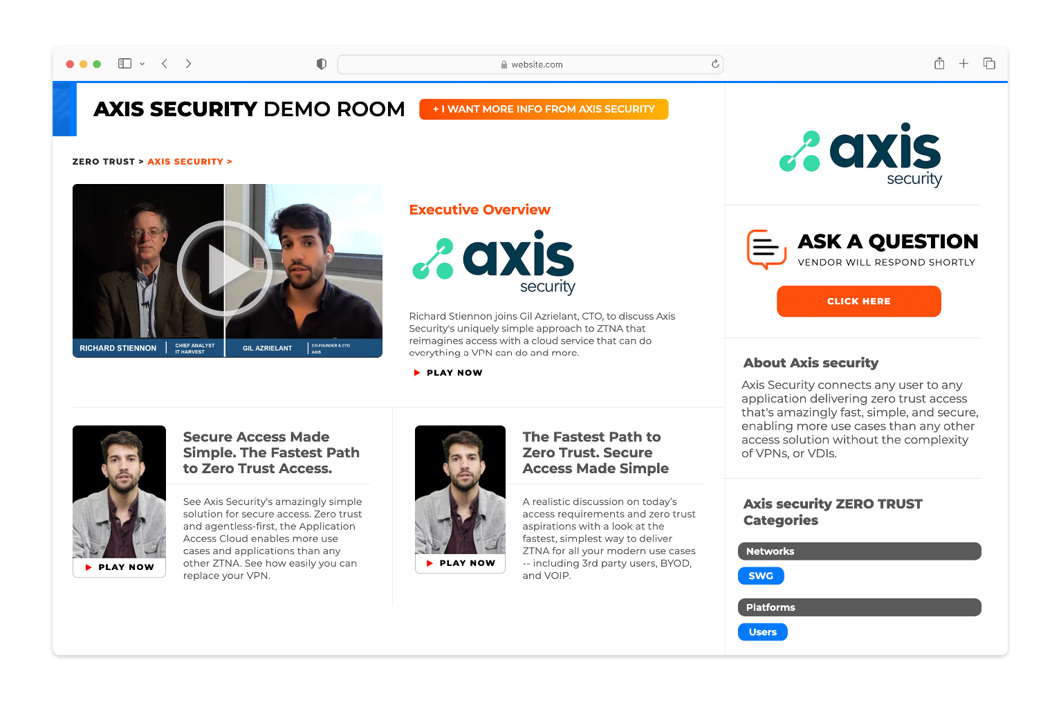 Demo Rooms give access to vendors’ founders, solution engineers and other subject matter experts on demand.